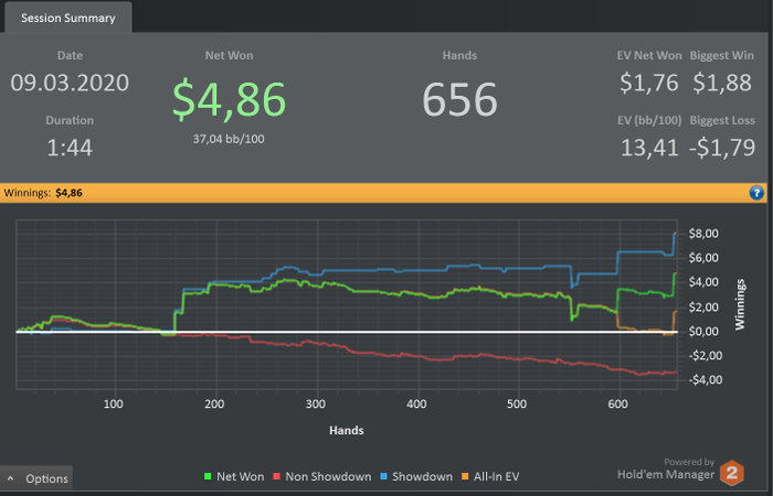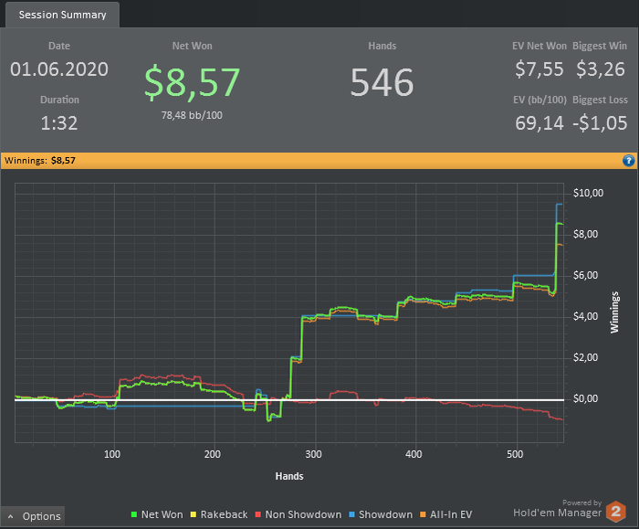 Буду играть NL2 Holdem и выкладывать результаты ежедневно. Свободного времени немного, поэтому в день наигрываю около 1к рук. Играю 4 стола.