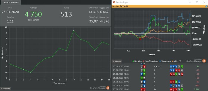 Периодически занимаюсь с тренерами и улучшаю свою игру. Периодически с огромным рвением и + мотивацией начинаю разбирать свои раздачи, искать критические ошибки (но быстро сдуваюсь). Дневник создаю, в первую очередь, для системности и дисциплины. Постараюсь (ну очень постараюсь) выкладывать сюда отчеты по каждой сессии, графики, интересные раздачи и прочее.