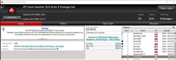 Проходит пара дней и я отобираюсь на мейн евент EPT в Сочи в октябре. Жизнь налаживается!