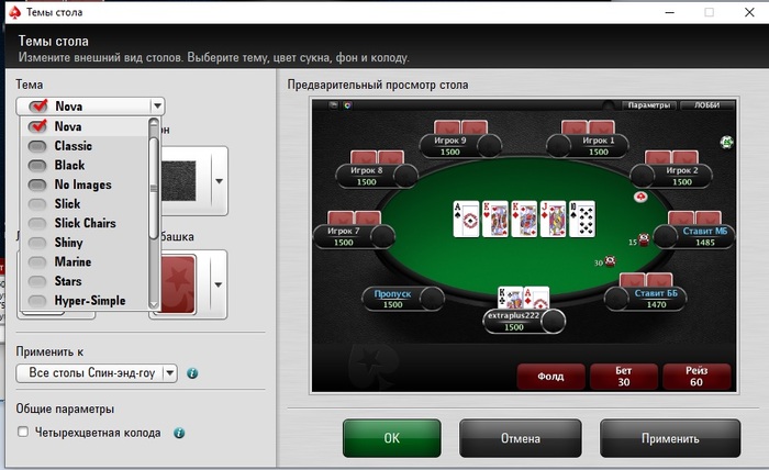 При этом настройки стола выглядят так и можно выбрать только 4 темы.