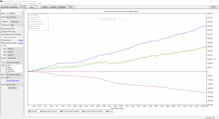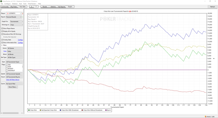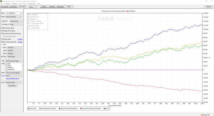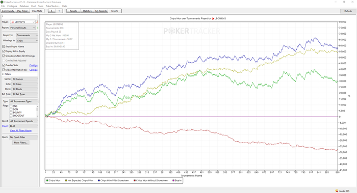 Всем привет! Меня зовут Леонид, мне 32 года и проживаю я в городе Ессентуки. В спины играю относительно недавно где то год примерно, всего в покере лет десять в основном кэш. В данный момент времени играю 10 лимит на pokerstars. Раньше я учился в школе по спинам, теперь играю сам, правда на бэкинге. За последние месяцы у меня очень сильно упала мотивация много играть, даже 100 турниров в день не играю сейчас. В среднем в месяц стал играть меньше 1.5 тысячи турниров, даже несмотря на то , что сейчас не работаю над игрой, это очень сильно печалит меня. Я решил завести блог для самодисциплины и для общения с коллегами.Может так я смогу вернуть былую любовь и желание к этой игре.Играю я два стола, но с этого дня постараюсь играть 4 стола и выкладывать каждый день графики, может и раздачки какие то. Заранее благодарен всем, кто будет заходить в мой блог, всем буду рад!