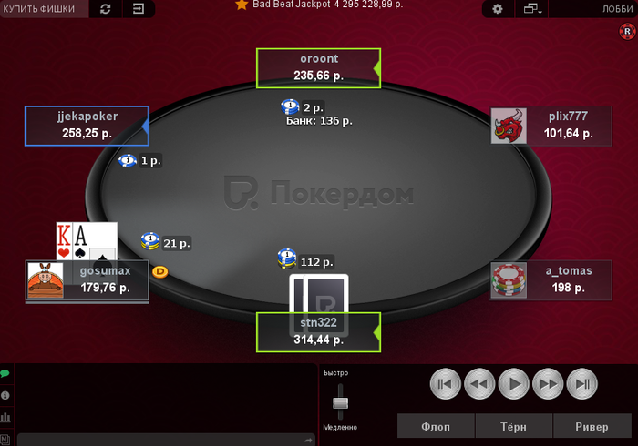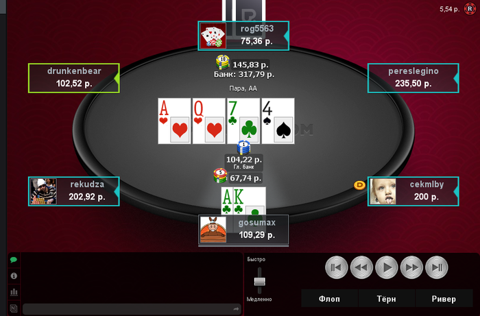 Если же это просто отморозок (что неплохо было бы знать до раздачи), то там уже возможны варианты, но имей в виду, что при таком спр опп, если у него рука не напоминает ногу, инстапушит любой флоп. Значит, в некоторых ситуациях придется принимать сложное решение и отбивать по голым ак.