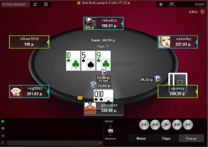 Вторая - пассивная рыба втыкает рейз овербетом, а у тебя тпмк. По дефолту надо жать кнопку фолд, не потратив ни секунды таймбанка. Был бы не овербет - ок, колл