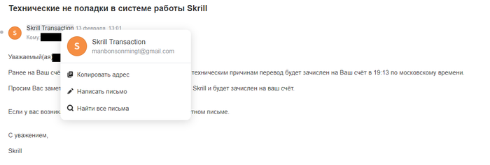 Парня подвела финансовая неграмотность, ну, и конечно же, не самое удачно подобранное название почты для псевдоскрилла.