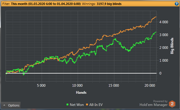 В мтт все грустно. Единственная финалка была 1го числа. Весь месяц вообще ничего не происходило, и лишь в конце несколько дипранов. Что-то капает с акций и кеша.