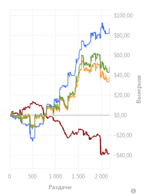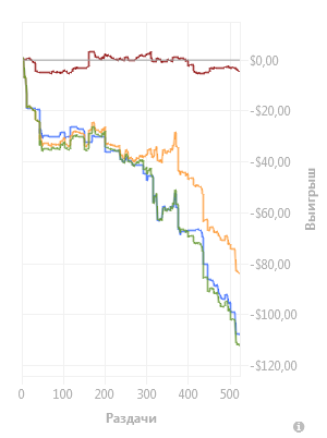 После этого решил перейти на NL10 и вот здесь меня просто размазали. За 1000 раздач минус 100$. И дело не только в деньгах, но и в уровне моей игры, реально было тяжело. После этого покопался в интернете, уделил несколько часов теории. И началось получаться, просто уменьшил кол-во разыгрываемых рук. И уже почти отыграл тот минус.