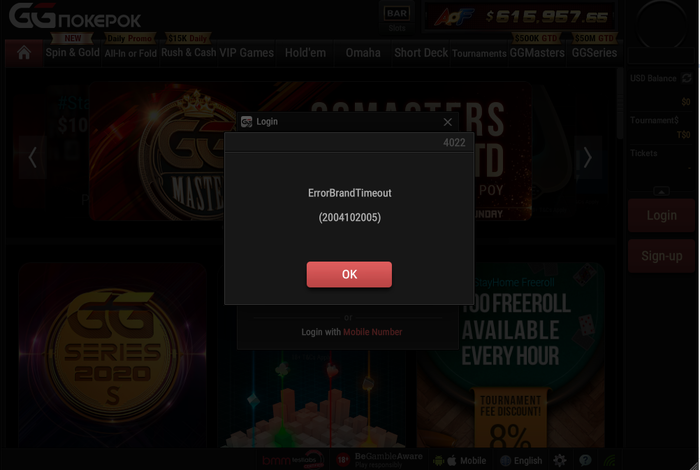 В это время, я как раз зарегистрировался в турнир и меня выкинуло c рума и повторно зайти в него не мог.