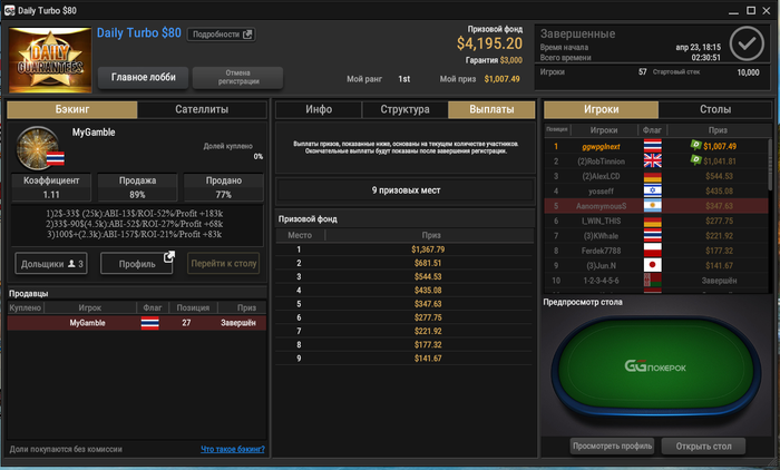 Депнул вчера на покерок 300 баксов последних, и в планах было ещё на основной рум сегодня как минимум 1.5к с кредитки закинуть. Но покерок встретил неплохо, первый же турник удалось занести.