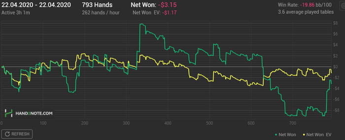 Я играл очень и очень мало. Но я повторюсь в связи с карантином, я решил что-то поменять, что-то возобновить и сейчас я здесь с вами: кайфую играя, общаюсь, рассказываю об игре, учусь вместе с вами и просто живу в этом новом небольшом мирочке покера!