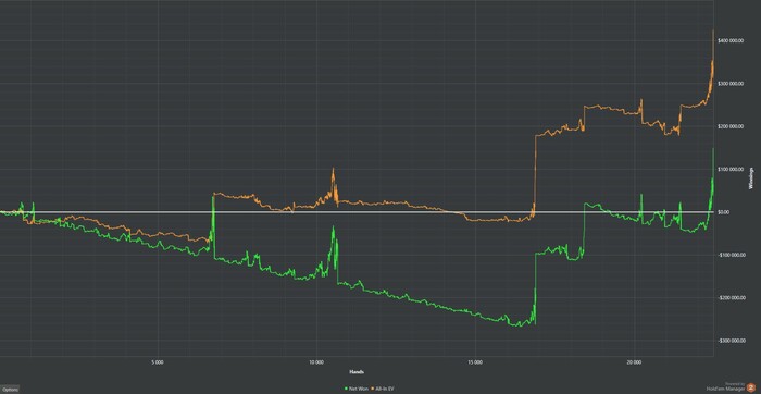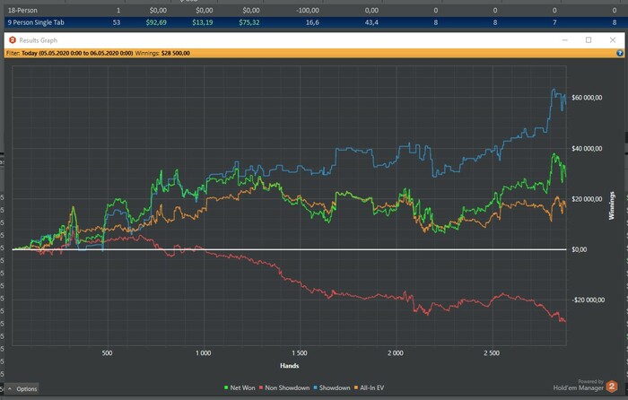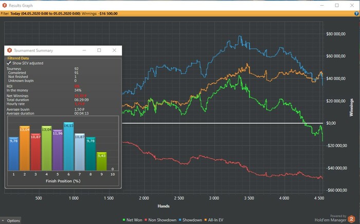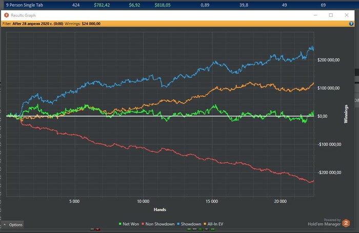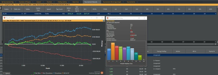 Итак за 10 дней сыграл 431 турнир результат хотелось бы лучше, для начала буду увеличивать ренжи открытия (когда играю 6 столов вроде норм как только подгружу 8 начинаю слишком узко играть). Раздобыл ICMAZER 3 буду в СНГ COACH прокачивать себя по пуш фолду.