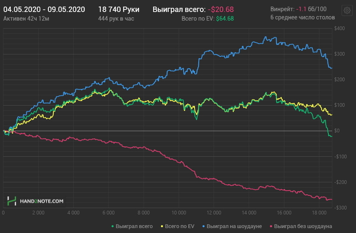 Чувствуя себя полным говном со слезами на глазах я наконец-то решил поработать над игрой. Поскольку поле интересное и линии у них интересные, то нет ничего лучше чем спиздить страту у самого могучего из них. Покопался в одном: хороший винрейт, хороший перебор - всякое в жизни бывает. Покопался во втором, третьем и т.д. - хороший винрейт, хороший перебор. Ёбаный рот этого казино - такого уже не бывает. Обьеденил я всех игроков на которых есть 10к+ рук и у меня волосы засветились. Что это за хуйня, малята?