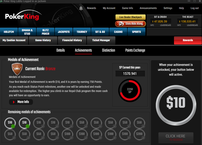 victorwinner, Привет. Рейкбек выплачивается двумя способами: денежный бонус по достижению определенного количества очков статуса (Status Points, SP) и обмен очков Роялти (Royalty points, RP) на деньги. Вне зависимости от уровня лояльности за $1 рейка начисляется 5.5 SP. Твой текущий статус - бронза, на этом уровне соотношение SP и RP - 1 к 1. В твоём случае по достижении 2250 SP за год будет доступен очередной бонус в размере 10$. Кроме того, все накопленные RP можно обменять на деньги.