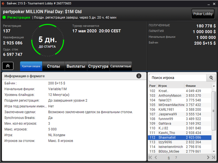 Катаю по возможности где только можно но пока все очень слабо, да и времени поменьше стало. Но жду главного события это турнир за 215 $ мне жизненно важен ITM.