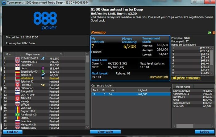 Играл на Partypoker (начинал играть и периодически до сих пор катаю, но очень редко), pokerking ( играл только фриролы на Веном), pokerdom (сыграл очень мало, чисто кеш), Pokerstars и 888poker ( два основных Рума, на которых у меня сыграно наверное больше турниров, в принципе как и пати), pokerok (подключил совсем недавно, депнул 300$, и все залил)