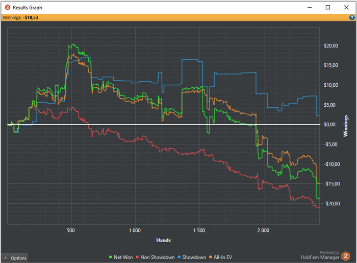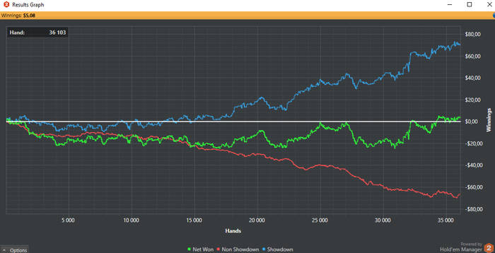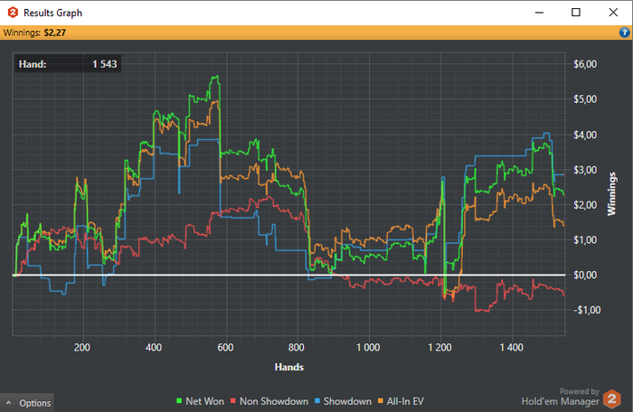 Всем привет,меня зовут Влад Мне 20 лет,живу в Саратове. С покером знаком с раннего детства,но всерьез начал играть относительно не давно.. Щас играю нл2 около нуля на 36к рук. данный блог создаю в первую очередь для себя и для дисциплины. Буду выкладывать графики каждой сессии) Еще я бросаю курить с 04.07 я не прикасался к этим раковым палочкам)) На данный момент есть краткосрочная цель,это побить нл2 и закрепиться на нл5. Долгосрочная цель это закрепится на нл 50,уволится с работы и начать зарабатывать четырехзначные цифры,но пока что до этого далеко.