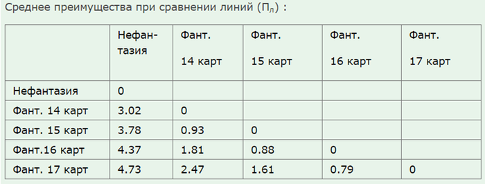 Для 16ф, как и для всех фантазий, мы имеем расклад по линиям по всем комбам и можем посчитать среднее преимущество по каждой линии.