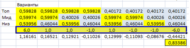Для разных вариантов развития событий свои коэффициенты от -6 до +6.