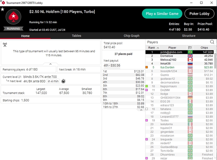 Бытие видимо проверяет мои убеждения на прочность. Вчерашняя сессия была аномально тяжелой. Я никогда не видел такого большого количества финальных столов одновременно и почти за каждым я становился или бабл боем или отбивал баин.
