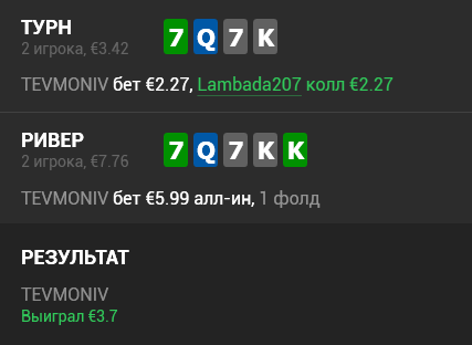 lambada208 @ 21.7.2020 В данный момент чувствую, что смог бы бить нл25, но хотелось бы пройти весь, так сказать путь. По этому начну с нл10. Играть буду zoom 10€ на PokerStars.ES.