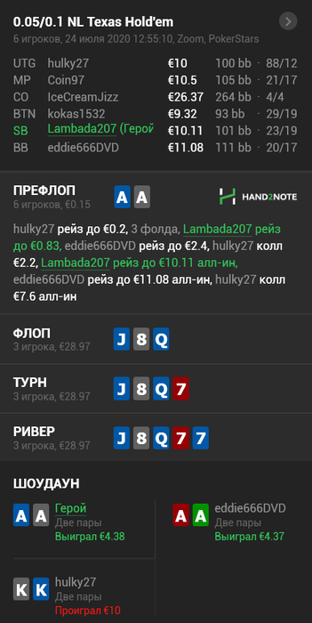 lambada208 @ 21.7.2020 лимитах ниже нл50 в зуме все так же много слабых игроков