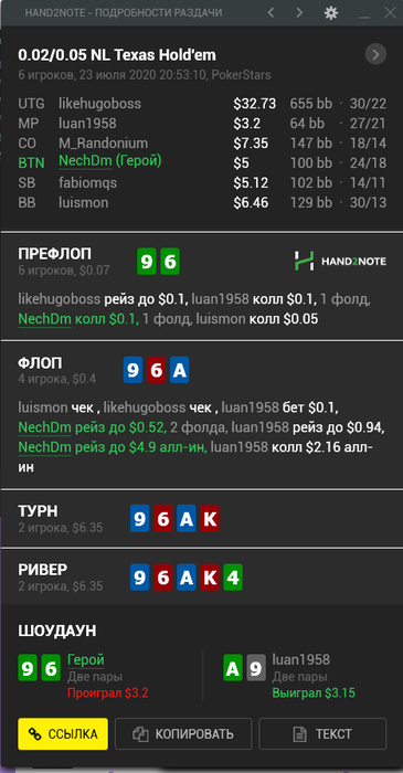 Случайно знакомлюсь с типчиком в канале телеграмма. Языками потрещали и решили вместе над игрой работать(тогда он уже бил нл5-10 с 10-15евбб/100). Причем на старзах... Перешел я с пати на старзы, дали мне чарты, ХАД и погнали. Посмотрел он мою игру и нашел несколько ну уж ОЧЕНЬ глобальных ЛИКов. Это были те самые ЛИКи, которые ранее мне не давали и нл5 побить. (разгон банков, пот контроли, селект, игра против фишей и регов)