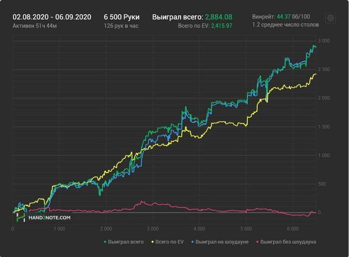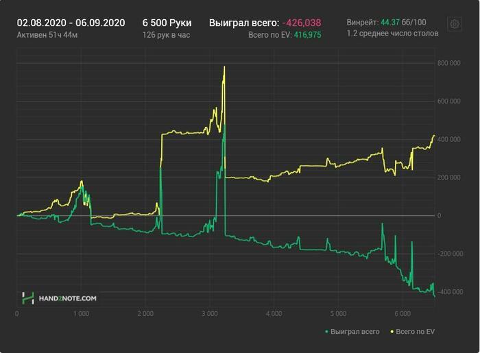 Подскажите знающие люди в чем более правильно и адекватнее смотреть недобор/переап на графике в hand2note: в фишках или bb? И какие средние цифры должны быть на дистанции в винрейте? Вот графики на PS, сбросил статистику 2 августа, дистанция небольшая.. это лютый недобор или норма? Во всех важных выставлениях в дипранах проигрываю 85/15, 60/40 и т.д., примерно 70-75% раздач сверху. Самый ущербный и минусовый месяц пока-что. Нигде не получается доехать, в выставлениях уже знаю какие карты придут оппоненту. Есть еще статистика на 888, но там особо вопросов к руму нет. Первый график в ББ, второй в фишках