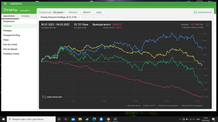 •Графики (EVBB100), ники в покер румах и статистика (при ее наличии)