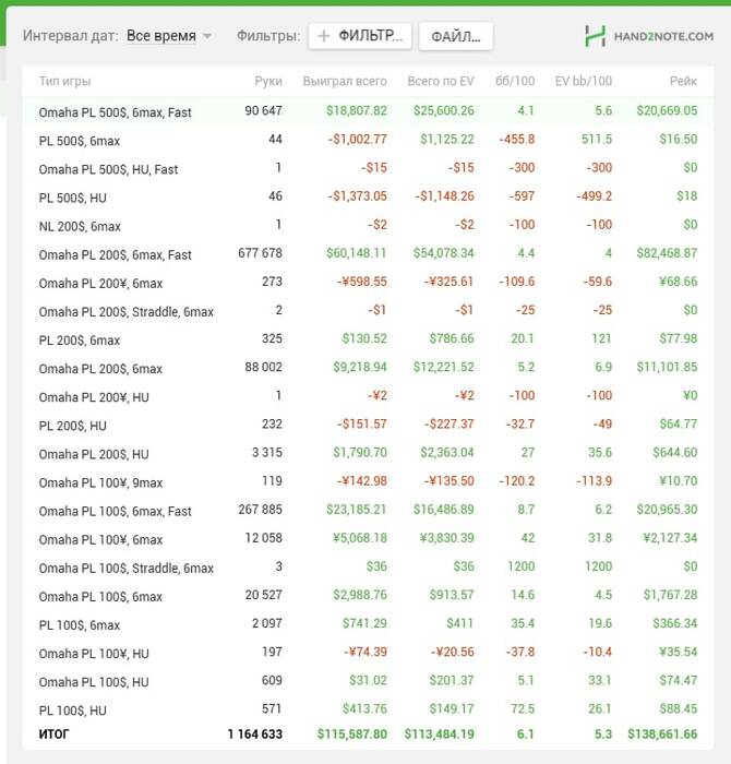 Играю в Омаху пол года раньше играл на микролимитах на Израельский фонд на их акках по этому нет статистики за те 100к рук. Сейчас готов уделять всё время на покер и хочу до конца года подняться до PLO100