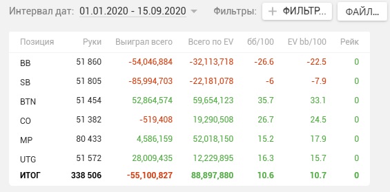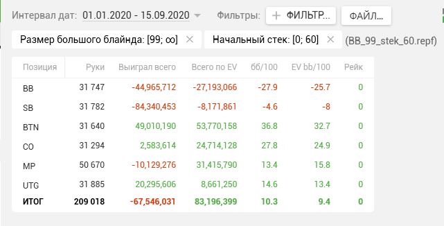 Результаты за все время:Винрейты 2020:Винрейты с фильтром большой блаинд 99+, размер стека 60-Возможные варианты тренировок: