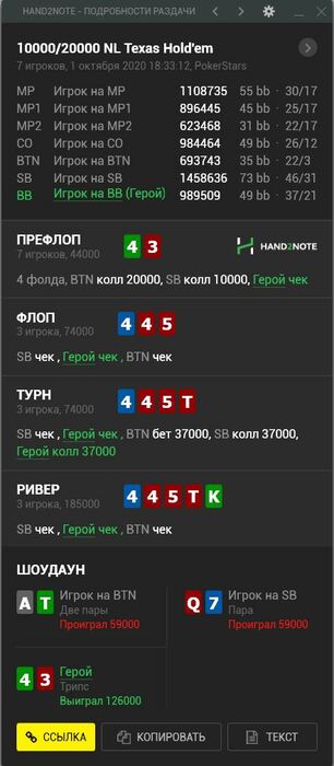Оптимально на мой взгляд будет против большинства регов играть чуть выше их диапазона 25/21 где-то, побольше 3В в позиции. Не хиро колить на ривере в неблефовых спотах. Если летит пуш 70бб на ривере, когда банк 60бб, от таких оппонентов, то блеф там будет <0.001% случаев. Это тоже нужно принять. Если вы на овербет на тёрне получили кол, то у этого господина натс. Если не доезжаем ривером, просто чек/фолд. Все средние руки улетают в пас на овербет терна за 0.3-0.7 секунды .