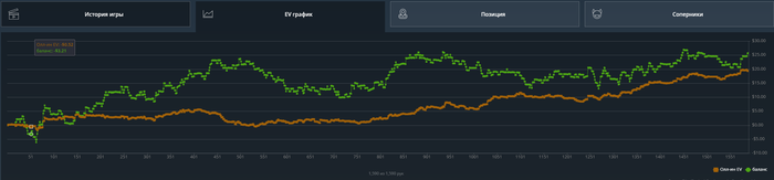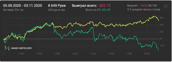 evis2727, согласен полностью. Вообще ни о чём дистанция. Но дело не в ней. Дело в моей игре и игре оппонентов. Я же не вчера начал играть . На основе откатанных дистанций могу с уверенностью сказать, что ничего не изменится ни за 300к рук ни за 3М рук. Просто у среднего игрока на микросах оооогромные лики в игре. Они не анализируют раздачи, поэтому их игра не меняется. Если не менять свою игру (не заходить в хлам, например), то в целом миролимиты бьются очень легко, но допускаю локальные просадки!
