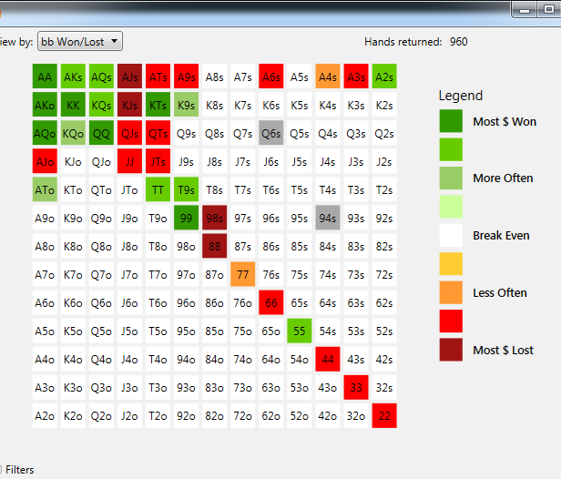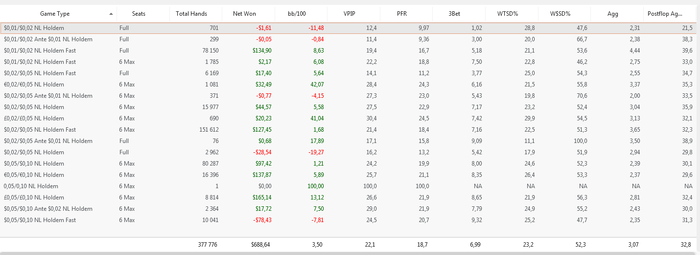 График за пройденный месяц. После проведенного анализа базы тренерами с gipsyteam буду вводить следующие изменения в свою игру: - Повысить % агрессий флопа с показателя флоп Конт Бет 50%, минимум надо повысить этот показатель до 65% -Провести работу над защитой позиций Большого блайнда, через расширение диапазона Колд колла и 3-бета против позиций стила - Превести в порядок показатель чек-фолда флопа будучи префлоп агрессором -Уменьшить показатель фолда на Конт бет флопа до 47%