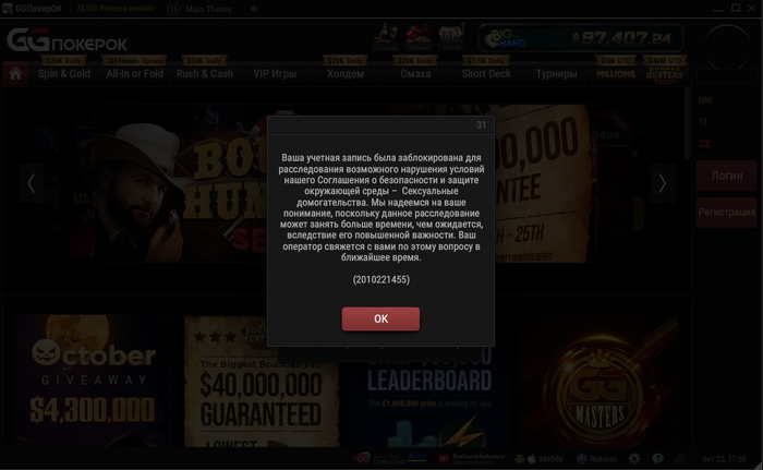 Просто знайте какое неуважение к вам могут проявить на сайте ПокерОК.