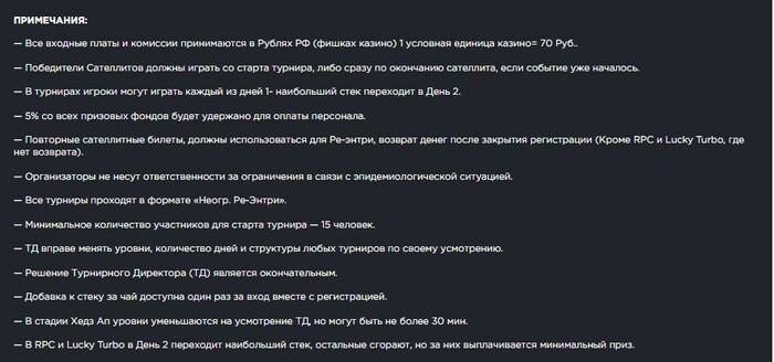 Кроме того, вы можете принимать участие в сателлитах к турнирным долларам (T$), которые потом можно потратить для входа в любой турнир серии. Подробное объяснение этой системы можно найти здесь.