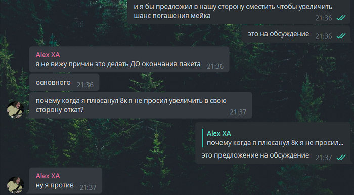 Все шло хорошо, какие то месяцы мы плюсовали, какие то по схеме выплаты профита по рукам, ситуация устраивала обе стороны, до Октября.