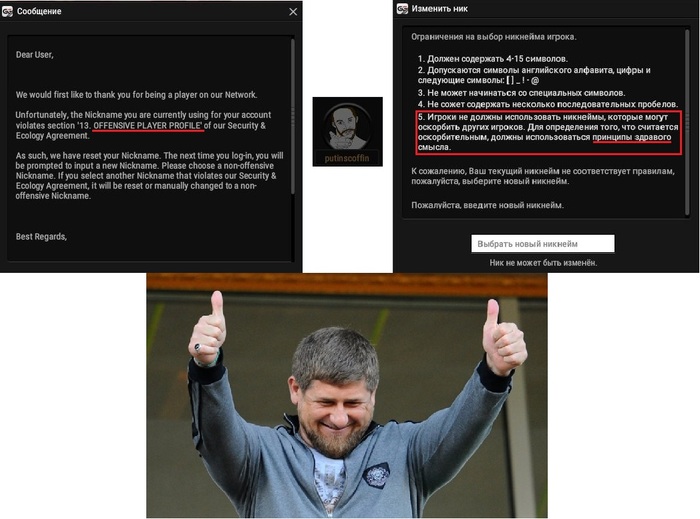 Ох, друг, сочувствую. Да, покерОК, конечно, та ещё контора. У меня тоже странная история с ними произошла. Даже не знаю как рассказать, чтобы не приняли за конченного параноика и конспиролога. Кароч, я у них зарегился не так давно, получил этот бездеп в 11$ и начал по-тихой знакомиться с румом и выполнять задания этого их "Медового месяца". А чо не повыполнять? Халява же. И, значит, где-то через неделю после регистрации и получения бездепа, я захожу в клиент и вижу вот такую хуйню: Вот мой старый ник: Это я на память его заскринил, он затемнён, т.к. на на фоне этой штуки выше был. Кому не видно, пишу: putinscoffin мой ник был. Совершенно безобидный и милый ник. И меня насильно заставили его поменять. Ну а чо было делать - мне нужно было эти задания сраные выполнять, поэтому сменил. Когда вошел в клиент, увидел ещё следом это письмо во внутренней почте: И я сижу такой, смотрю на всю эту хуйню и реально не вдупляю что тут, сука, происходит. То ли на меня настучал какой-то ебанутый ватник, встретившийся мне за столами. То ли этот ебаный рум уже принадлежит гэбне. Там в соседнем треде Инвокера Михаил Геллемар Гэмблер рассказывал, что владелец рума какой-то кореец. А мне уже кажется, что не кореец, а узбек, и имя его - Алишер Бурханович Усманов, например. Большой специалист по развитию интернета. Но тогда непонятно какого хуя они меня пропустили на стадии регистрации и выдали бездеп. Вот и пойди разберись, блин, во всей этой истории)