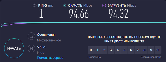 Сделал диагностику интернета, результаты были приблизительно такими.