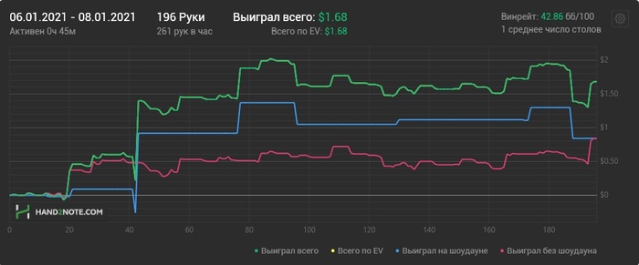 К тем 45 зеленым добавились всякие бонусы от кардханта/сундуков и прочей ерунды, на БР 50-60$ начинаю месить НЛ2 FR + загрузка регспид МТТ по 1,1/Билдеры по 0,55-1,1. Вот удача, дип ран до топ 2 в билдере 0.55 + 20к рук с лишнем на НЛ2 с ВР 17ББ/100 принесли к концу июня БР в районе 300$