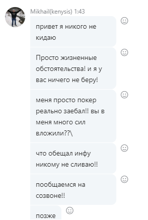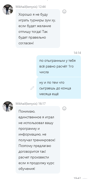 Получил доступ к архиву тренировок, неделю его изучал, за это время сыграл буквально несколько турниров, потом заявил, что он погорячился и решил уйти с покера.