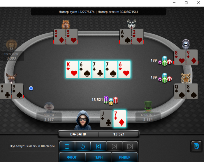 Один опп отрезался, в итоге он пушит свои 2 бб и весь стол в охоте за этим накаутом кааак пойдет в олл ин)) я уже в голове обдумывала, как я буду ребай брать, пришлось на такой сладкий банк залезть) И как по классике в мультивей потах- самая дерьмовая рука забирает весь куш))