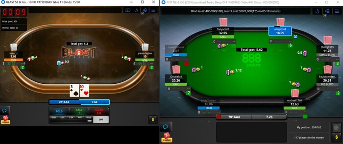 Здравствуйте, возможно кто-нибудь сталкивался с данной проблемой и подскажет решение. H2N не заполняет HUD в МТТ на 888 Poker. То есть HUD на столе отображается, но в графе кол-во рук стоит цифра 0 и не обновляется на всех остальных статах просто стоят -- и не заполняются. Причем данная проблема только в МТТ, попробовал сыграть BLAST там все работает нормально руки считывает и статы обновляются. На PokerStars все работает без проблем. Поддержка через HUD конвертер включена, настроено все вроде бы правильно, но все равно не работает.
