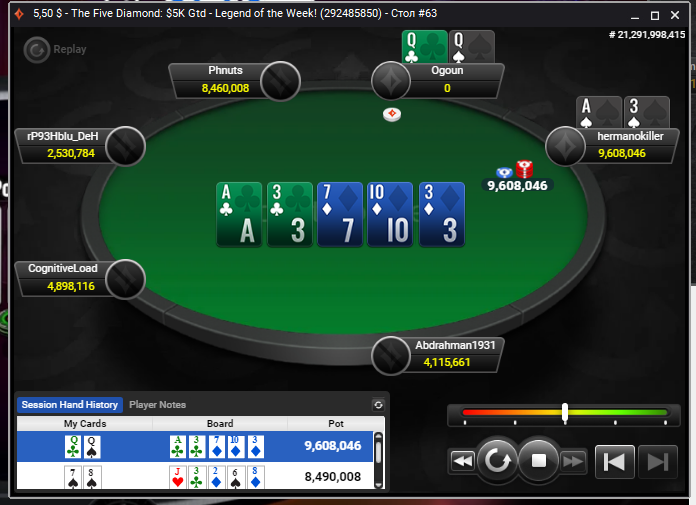 Играл очень хорошо, ошибок не было, только несколько мискликов, пати нет смысла трекать в одну калитку сегодня, без шансов. Как и всегда проблема когда едем Дамы, Тузы и Короли префлоп, далекоооо сверху идем на 3 буквы.