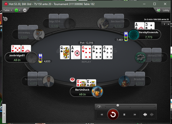 Привет, ребята, если меня читает конечно кто-нибудь, ставим плюсики, трям. Готовлюсь к сегодняшней сессии, очень не хотелось играть по пробуждению, но сейчас ситуация изменилась, будем работать и посмотрим во что это выльется. А прка запилю скрины прошлой сессии. Вот так на пати сдавали, без шансов, даж не итмнулся нигде. Турниров было 8 и везде без шансов, практически на бабле вылетал. Мало блайндов было совсем, не жалко Ну тут все понятно Стандартная ситуация пуш префлоп, не понятно чем он думал когда колил, ниже АДр я в такой глубине никогда не пихну префлоп. Префлоп запихал, товарищ - любитель. там дальше не помню на чем вылетал, блайндов не много оставалось. Ну тут тож все ясно, префлоп рейзил, на пуш клал ребят на оверкарты, изи колл Это 6ой из 8ми в тот день сыгранных турниров, В 7ом АВр В АДр вылетел постфлоп, 2ух тузов положили на доске и к риверу чел в позе пушнул под спр 1, и все улицы плотно проставлял, кололть надо было без шансов, там много тузов слабее, удивительно, на самом деле, что в мое открытие с мп на катоффе он не трибетил эту руку, поэтому был изи колл. В 8ом не помню как вылетал. На старзах вот ехали Это большая печаль была, единственная надежда на ту сессию. И вылет с 3мя блайндами по классике