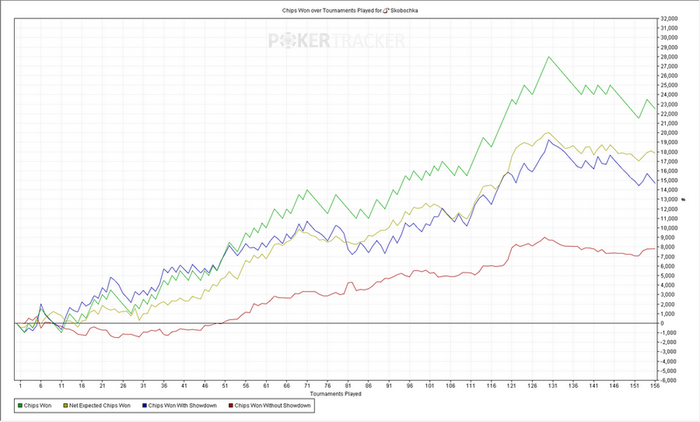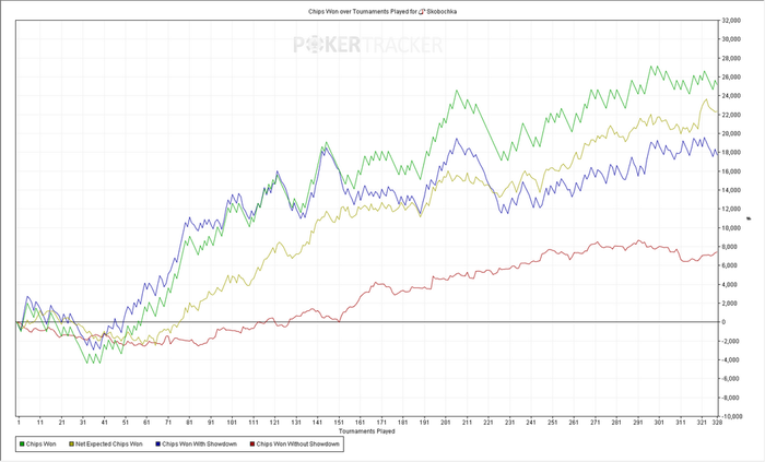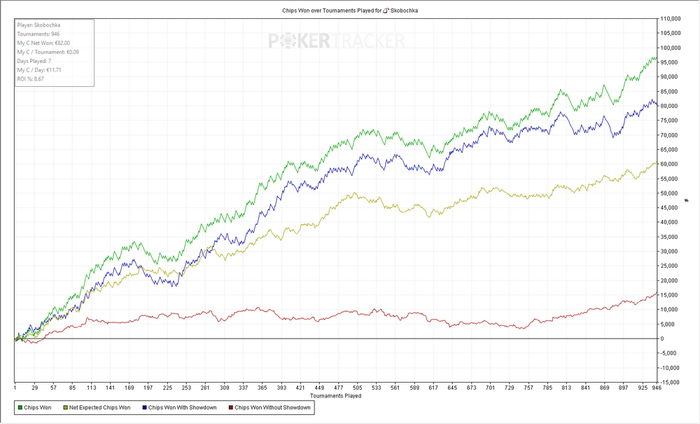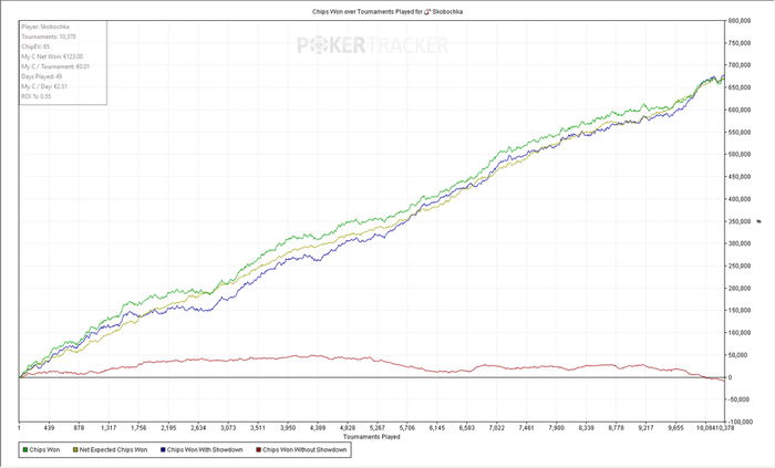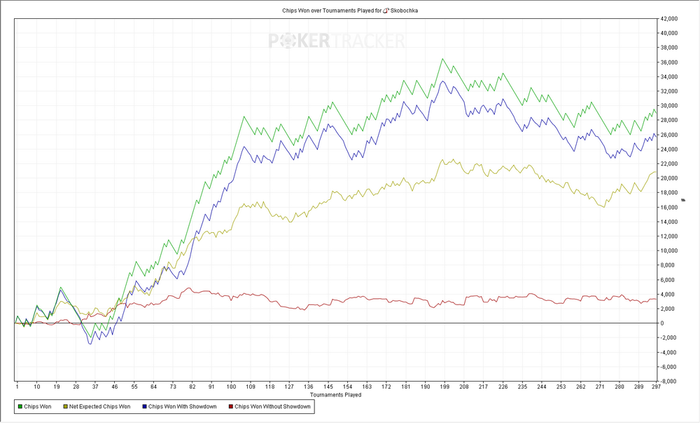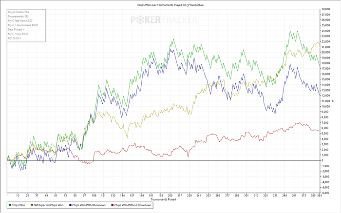 Турниров 4850 ЧипЕВ/турнир: 68.5 Чип/турнир: 62.6 Результат: +566€