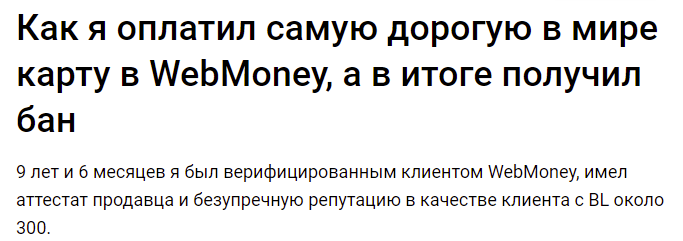 Да понятно что сейчас webmoney фактически безальтернативна но хочется чтобы люди знали что деньги там хранить небезопасно и что руководство некомпетентно и может закрыть счет за негативный комментарий в их адрес.