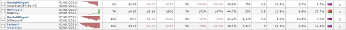 Вот так двигаемся к концу марта. Посчитал получилось на 25ое число 245 турниров и 600 евро профита. Выглядит как перебор при средней ставке 5-7 евро.
