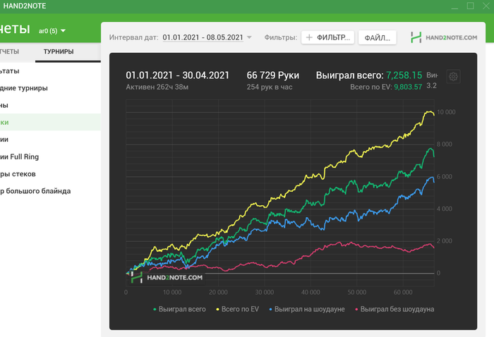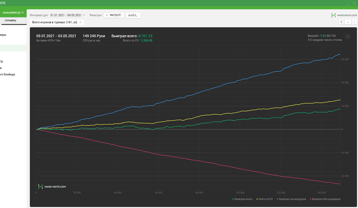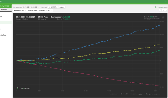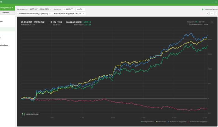 Начали заниматься когда у меня был период застоя-даунстрика. Помимо того, что улучшились ЕВ и результаты в целом, ещё и неожиданно раза в 1.5-2 выросло ЕВ по верху загрузки, лучше стало понимание игры + занос серийника бонусом. И это я ещё так себе усваиваю материал.