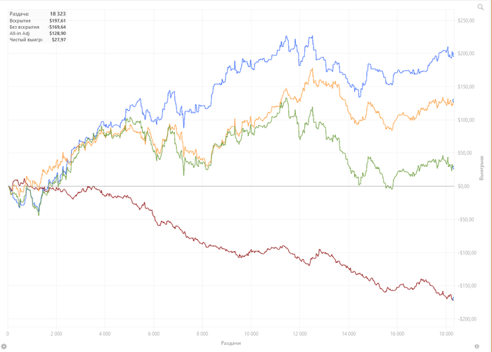 14.02.2021 Количество раздач: 3220 (всего: 14 478 / 100 000) Профит за сессию: -122.06 Общий профит: +4.03 9би недобора за сессию Го треню плиз, а то уже все мои действия кажутся неправильными