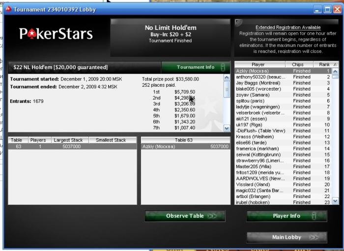Через 4 часа на работу, поэтому быстренько отпишу. В общем вроде как выиграл в акции от ДжипсиТим турнирной, что помогло создать какой то начальный банкролл для игры на ПС. НУ и во время самой акции очки получал только с турнира за 22 в 20:00, вроде как понравился он мне, так что и после акции начал его иногда играть... ну не то что начал прям плотно, но раза три сыграл... И.... Ниразу не попадал на финлалку в кило полях, вобще до ПС их почти не играл...