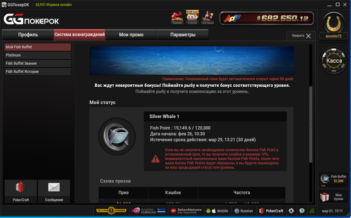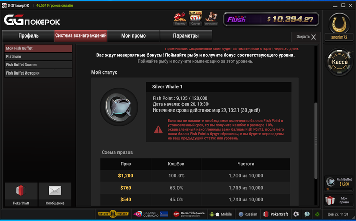 Зовут меня Рашид, в узких кругах микроболота на покерке в быстром покере известен как Anonim72 , долго не мог восстановить доступ к старому аккаунту, но вчера добрый модератор помог это мне сделать, вот решил завести дневник и записывать в нем различные цели и результаты, чтоб потом можно было ориентироваться какие у меня возможности . Вчера на покерке поменяли немного систему рейкбека, поэтому начну отчет заново , у меня стал статус серебрянный кит, чтоб добиться цели к которой я иду уже несколько месяцев мне нужно набить 5 ступеней статуса по 120.000, на каждую ступень дается месяц, но планирую набить быстрее, играю нл10, иногда прыгаю на нл 25. Вот примерно все. В планах набить статус черный кит и получать фиксированный рейкбек каждую неделю. В этом месяце брал перерыв, играл мало, начал можно сказать неделю назад. С этого времени и буду вести отчет.